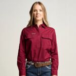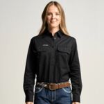 SOMERSET | Womens Half Button Long Sleeve Work Shirt - Navy OBCWWS001-NAV
